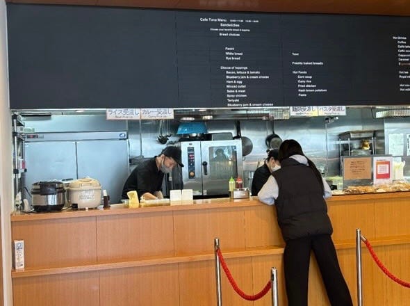 The man I interviewed is 54 years old and has worked in four different jobs throughout his life in a restaurant, an elderly care home, a hotel, and now at Meiji Gakuin University Café, where he prepares food and drinks. When I asked why he chose these kinds of jobs, he said it’s because he enjoys interacting with people. That’s why he has always chosen work that allows him to communicate and connect with others.